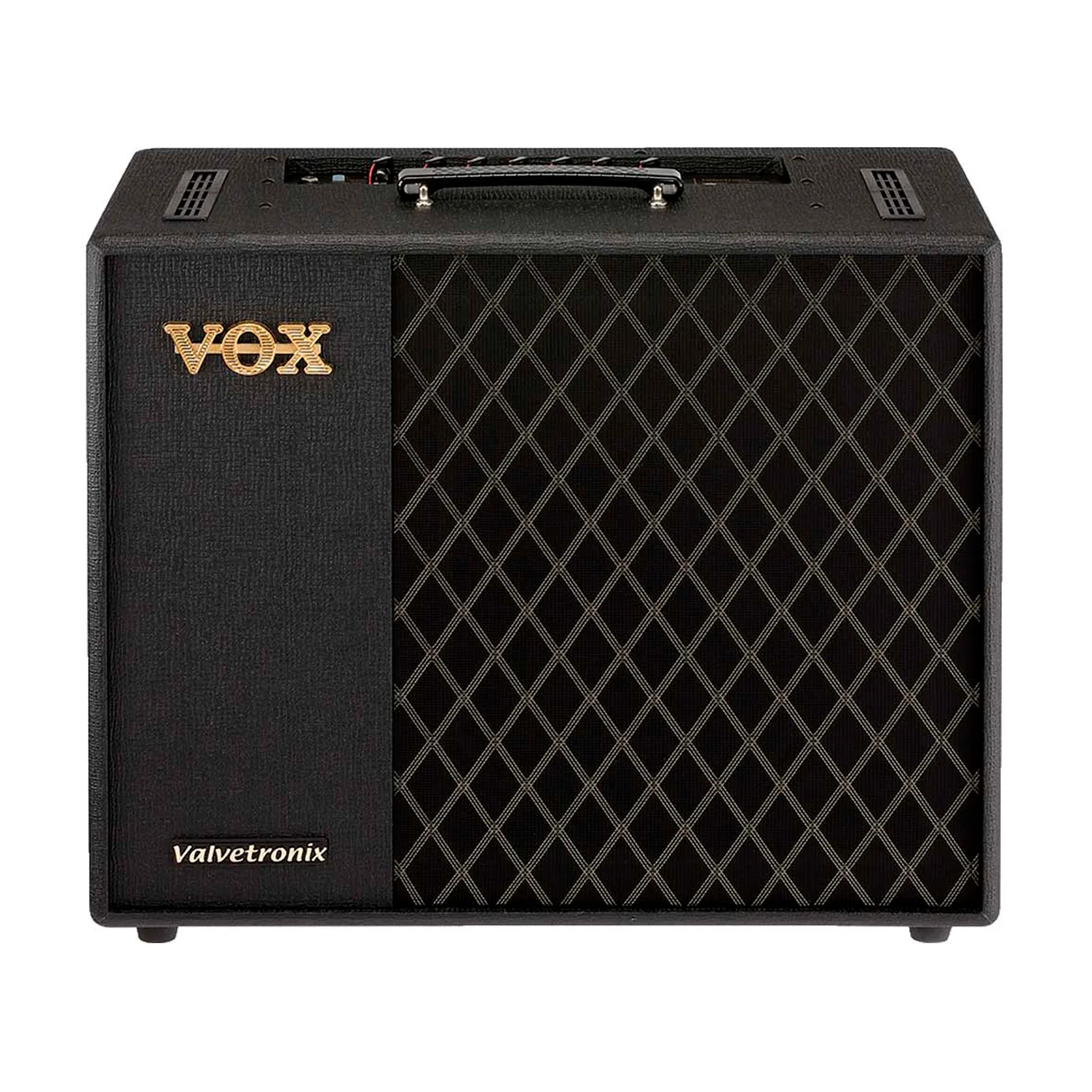 El amplificador combo de modelado para guitarra Vox VT100X emplea tecnología digital sofisticada, junto con un circuito analógico único, para ofrecerte el auténtico rendimiento de un amplificador de potencia a válvulas. Vox analizó componentes y circuitos de amplificadores reales al diseñar el VT100X, por lo que cada uno de sus 11 modelos de amplificador suena increíblemente realista. Un preamplificador de válvulas multietapa Valvetronix incorpora circuitos de válvulas auténticos, para que sientas los sutiles matices que esperarías de un amplificador de guitarra a válvulas. Una colección de 13 pedales clásicos añade una profundidad fenomenal a tu interpretación. Un gabinete hermético y una estructura bass-reflex de diseño experto garantizan que el amplificador combo de modelado para guitarra Vox VT100X ofrezca graves ricos y una resonancia de amplificador excepcional.