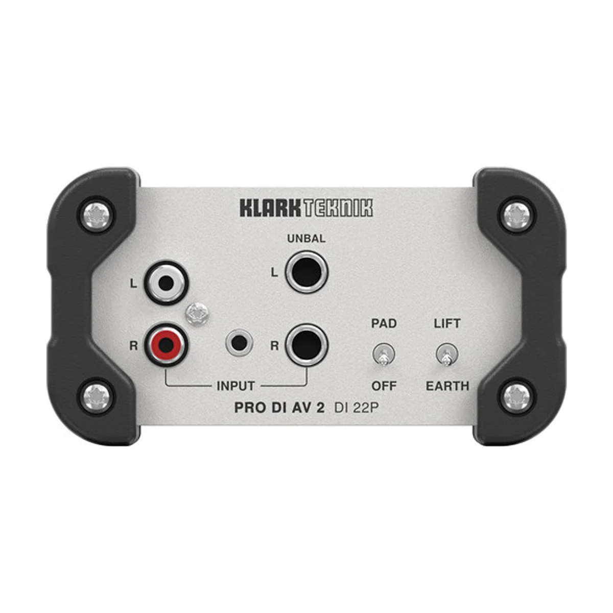 La caja DI DI estéreo pasiva DI22P con transformadores Midas y rango dinámico extendido de Klark Teknik está diseñada para conectar dos instrumentos, niveles de línea y altavoces, reproductores de MP3 y CD a una consola de mezclas.