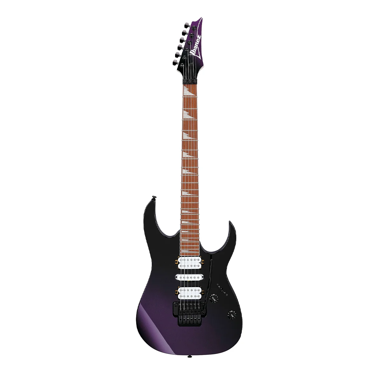 Con la RG470DX-TMN, Ibanez tiene en su programa una versión asequible de su exitoso modelo RG. El ligero cuerpo Meranti está acabado en Tokyo Midnight, el mástil de arce/Jatoba está atornillado al cuerpo. El trémolo Edge Zero II de eficacia probada garantiza un funcionamiento del trémolo sin tensiones, mientras que un juego de pastillas Ibanez Quantum HSH ofrece una amplia gama de sonidos.