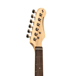 Guitarra eléctrica para principiantes de calidad increíble. La guitarra Stagg SES-30 ofrece un alto estándar de calidad de construcción y características, incluido el sistema de trémolo, cuerpo de paulownia sólida y 3 pastillas de bobina simple.